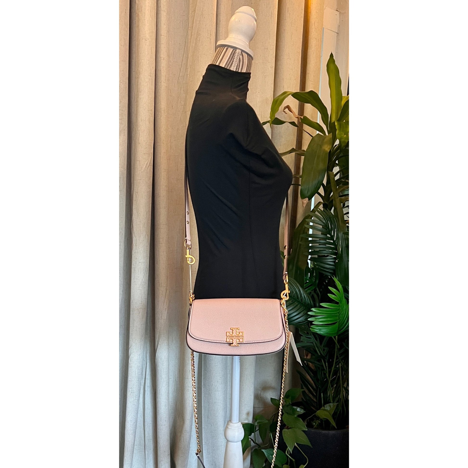 Elevate your style with this luxurious Tory Burch Britten crossbody. Crafted with premium pebbled leather, its elegant gold chain and adjustable strap offer versatility and sophistication.